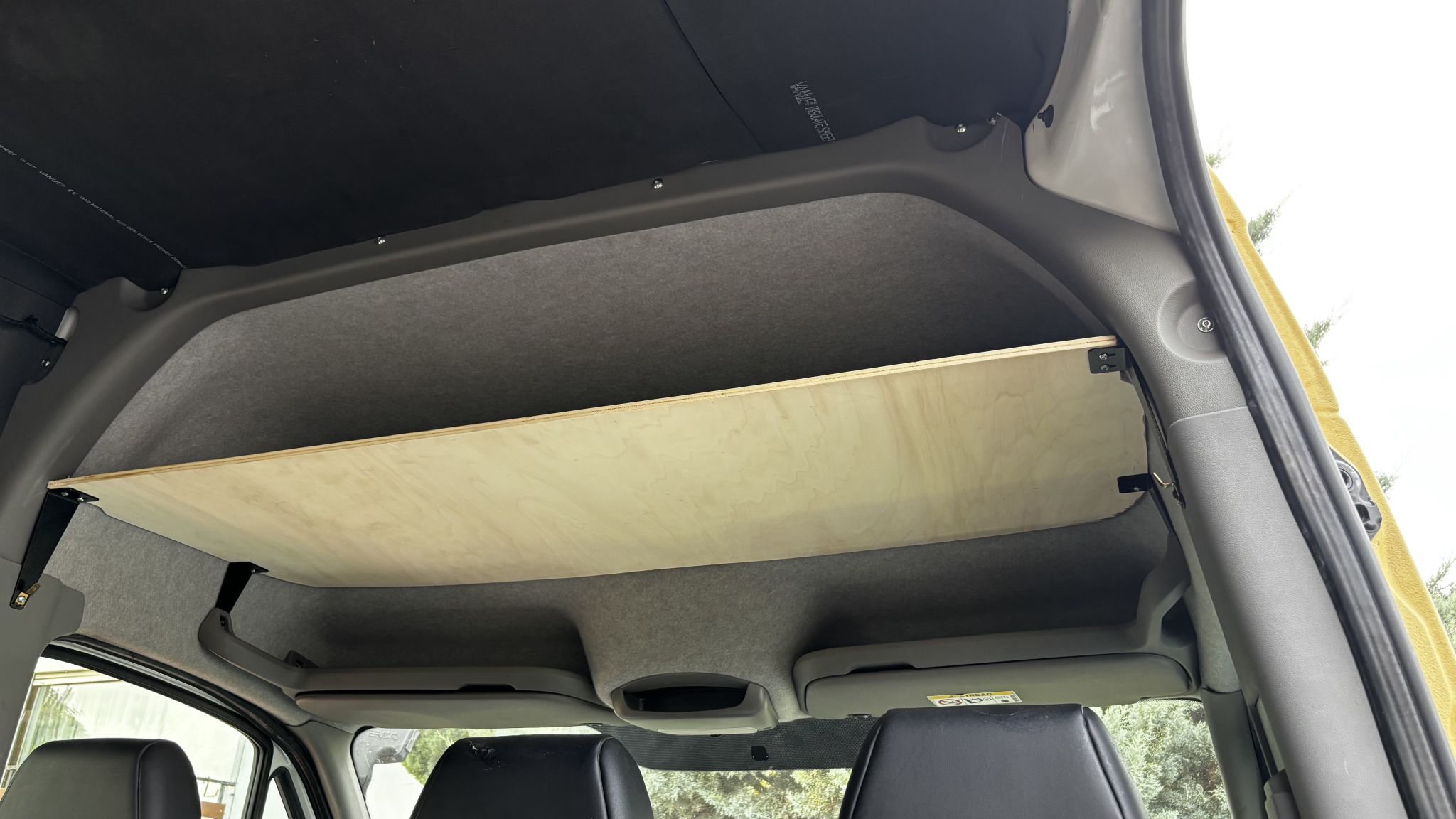 Im Fahrerhaus wird in der Decke eine Ablage montiert. Das gibt zusätzlichen Stauraum. Die Ablage wird noch mit Filz beklebt.