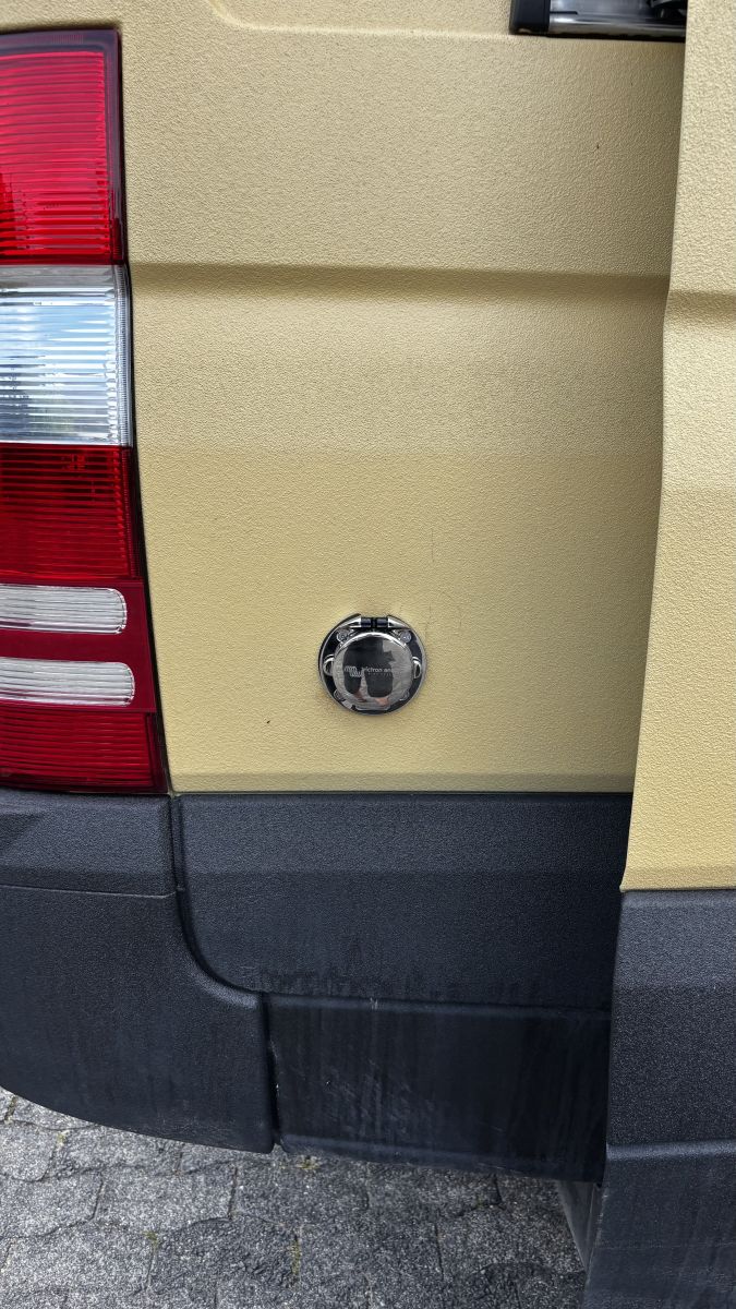 Weiterhin habe ich die Anschlussdose für den Landstrom montiert. Der wurde hinter der Schiebetür auf der Beifahrerseite montiert.